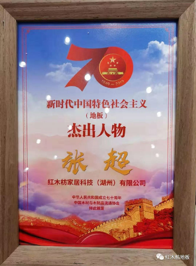 2019年10月25日,由中國木材與木制品流通協(xié)會和湖州市人民政府共同主辦的“2019世界木地板大會暨第六屆南太湖論壇”在浙江湖州盛大召開。紅木枋地板應(yīng)邀出席大會,并榮獲“新時代中國特色社會主義地板杰出企業(yè)”,董事長張超斬獲“新時代中國特色社會主義地板杰出人物”大獎。
