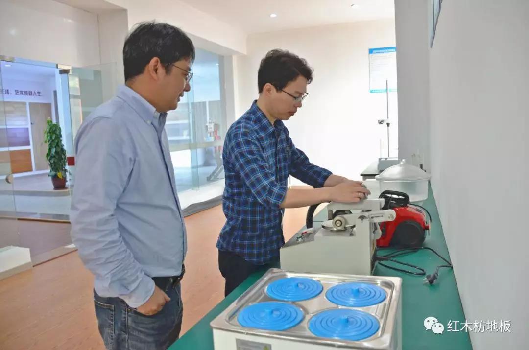10月24日,中國(guó)林科院木材工業(yè)研究所彭立民博士蒞臨紅木枋地板進(jìn)行技術(shù)指導(dǎo),紅木枋地板董事長(zhǎng)張超及技術(shù)總監(jiān)吳忠其熱烈歡迎彭博士的到來(lái)并陪同其參觀了紅木枋地板實(shí)驗(yàn)室和車(chē)間。