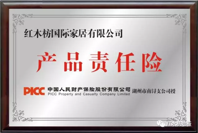 2018年5月25日,紅木枋地板全系列產(chǎn)品通過(guò)權(quán)威機(jī)構(gòu)的嚴(yán)格檢驗(yàn),并與中國(guó)人民財(cái)產(chǎn)保險(xiǎn)公司簽訂合作,成功投?!鞍偃f(wàn)產(chǎn)品責(zé)任險(xiǎn)”。