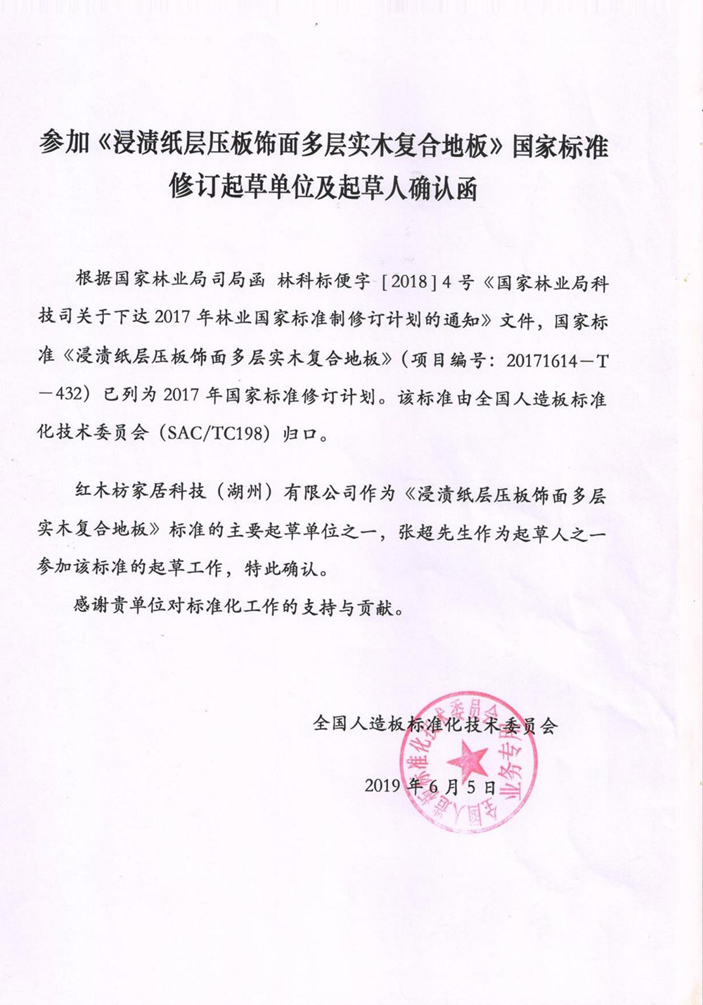 紅木枋地板于2013年投資1000萬(wàn)在蘇州市吳江區(qū)成立了蘇州市紅枋家居有限公司,并于2019年3月將蘇州公司遷移到浙江湖州南潯區(qū),成立紅木枋家居科技(湖州)有限公司,公司2019年被湖州市政府評(píng)為“南太湖精英計(jì)劃企業(yè)”專業(yè)生產(chǎn)銷售其核心專利《高穩(wěn)定多層復(fù)合地板》——科技新實(shí)木地板(國(guó)標(biāo)名:浸漬紙層壓飾面多層實(shí)木復(fù)合地板)。是目前國(guó)內(nèi)木地板行業(yè)科技創(chuàng)新能力較強(qiáng)、發(fā)展速度最快的制造企業(yè)之一,公司為中國(guó)木材流通協(xié)會(huì)會(huì)員單位、南潯地板協(xié)會(huì)理事單位,為《浸漬紙層壓飾面多層實(shí)木復(fù)合地板》GB/T24507標(biāo)準(zhǔn)主要起草單位,《實(shí)木復(fù)合地板用膠合板》行業(yè)標(biāo)準(zhǔn)LY/T1738主要起草單位,《負(fù)氧離子地板》協(xié)會(huì)標(biāo)準(zhǔn)起草單位,獨(dú)家擁有《高穩(wěn)定多層復(fù)合地板》專利技術(shù)。